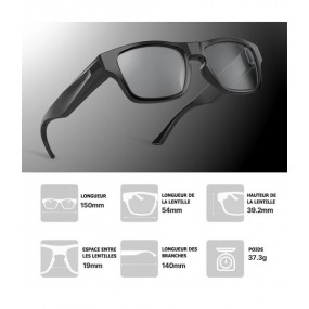 Lunettes avec caméra HD Wifi pour filmer en Full HD avec streaming direct sur smartphone. Grand-angle 120°, détection de mouvement, stockage sur microSD 64 Go. Idéales pour surveillance et activités, faciles à utiliser via application.