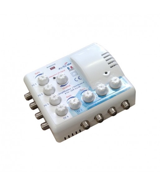 Amplificateur distributeur intérieur 8 sorties F UHF Tonna 402668 - Filtre LTE 700 4G 5G, Gain 16 x 8 dB, réglable avec mesureur