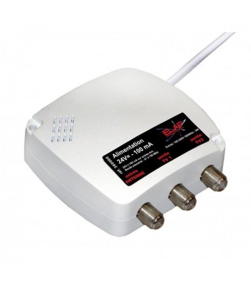 Alimentation 230vac / 24vcc - 100 mA Elap 360000 avec 2 sorties TV, idéale pour alimenter un amplificateur de mât ou une antenne électronique en toute fiabilité.
