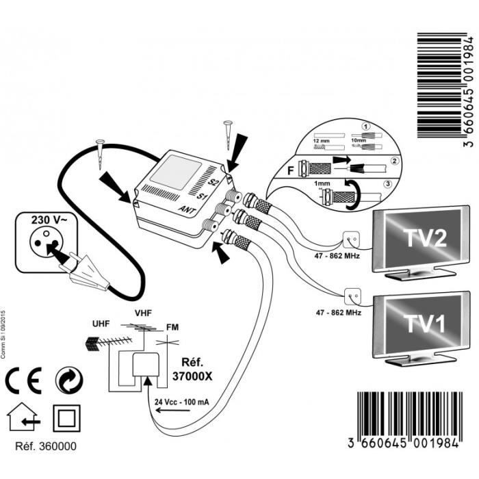 Alimentation 230vac / 24vcc - 100 Ma 2 Sorties Tv - Elap 360000 : Performance et fiabilité pour vos installations TV