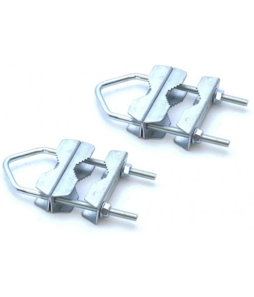 Pack de 2 pince pour Mât Double serrage en acier - Collier de Fixation pour Mât - Colliers en U 38mm à 63mm