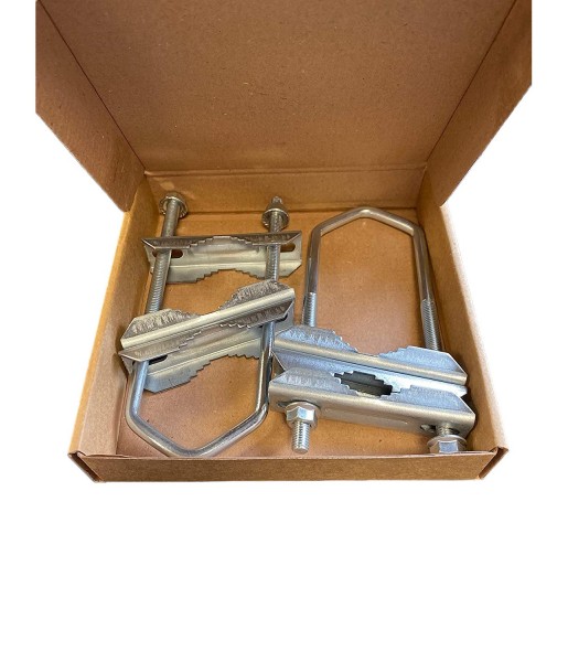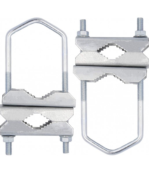 Paire de colliers robustes pour fixer solidement toute antenne ou parabole sur mât, installation rapide et résistance aux intempéries.