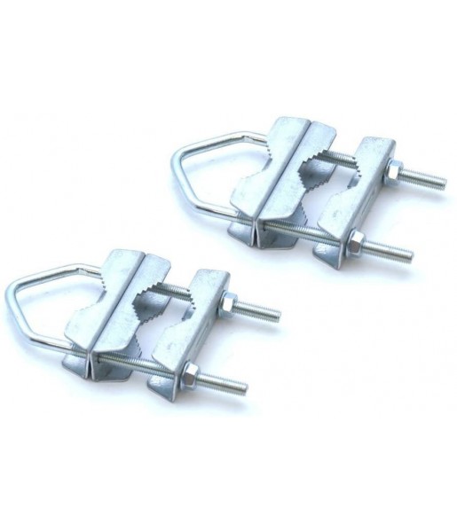 Pack de 2 pinces pour mât Megasat en acier, double serrage robuste pour fixer solidement vos installations satellites de 38 à 63 mm.