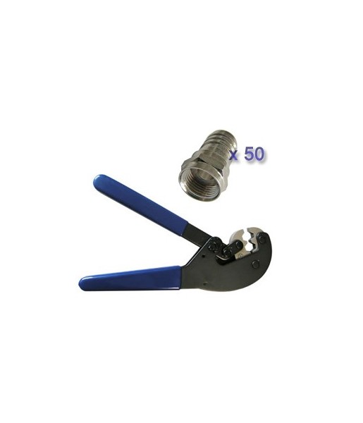 Pack Pince a sertir Professionnelle CHESS + 50 Fiches F a sertir pour cable coaxial 7mm 19/17 V(P)atc
