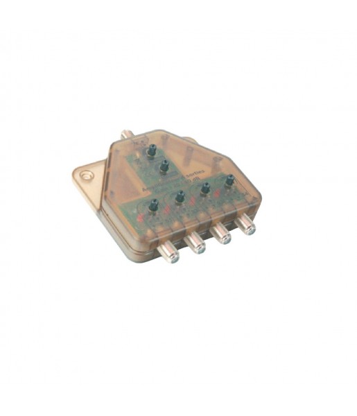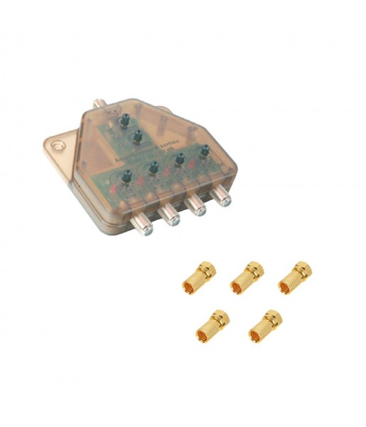 Amplificateur TNT UHF, Distributeur Télé alimenté 1 entrée 4 sorties + 5 Fiches F Or - Gain maxi 4 x 40 dB, Réglable