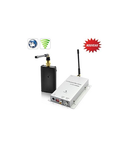 Amplificateur de signal sans fil / Emetteur + Récepteur A/V 1.2 GHz - 4 canaux - 1000mW - Portée 500m (Réservé à l’exportation)