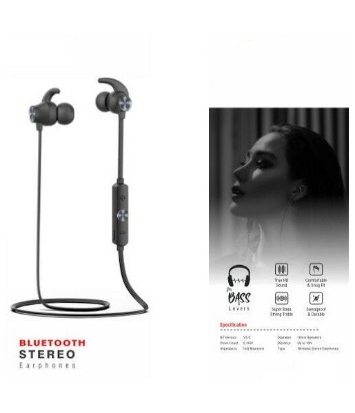Ecou.teurs Bluetooth 5.0 sans fil "tour de cou" avec microphone intégré et fabriqués à partir de matériaux légers de haute qualité. Des embouts silicones de différentes tailles garantissent une bonne tenue. Grâce à la connexion en Bluetooth 5.0 avec votre smartphone, vous pourrez entendre un son puissant 'True HD' (Super Bass / Strong Treble) jusqu'à 10 m sans interférence. Jusqu'à 5 heures d'autonomie - recharge en 1 heure Indication du n° entrant par synthèse vocale Caractéristiques techniques top barre Caractéristiques principales Type : Écou.teurs Bluetooth Protocole de liaison : Bluetooth Compatibilité : iPhone, iPad, SmartPhone, Baladeur Mp3, Tablette Protection : Résistant à la transpiration Produits compatibles : Android, iOS Réseau & communication Version Bluetooth : 5.0 Audio Technologies audio : Crystal Clear Mode de sortie audio : Stéréo Bande de fréquences : 20 Hz - 20KHz Impédance d'entrée : 16 ohm Diamètre du haut-parleur (Diaphragme) : 10 mm Sensibilité : 102 - 3 db Connectiques Mini USB : 1 Batterie Temps de charge : 1 H Autonomie : 5H Fonctions additionnelles Microphone : Oui Divers Portée sans fil : 10m Garantie : 2 ans Contenu du colis Accessoires fournis : Câble USB, Silicone de protection