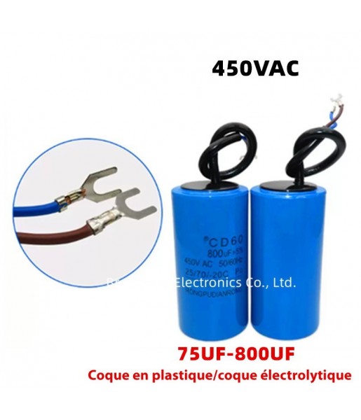 Condensateur de démarrage avec coque en plastique, cellule électrolytique, CD60, 450V, 450ylique, 200UF