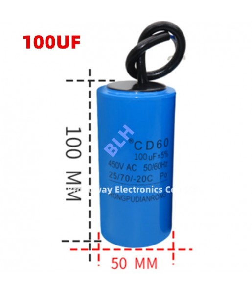 Condensateur de démarrage avec coque en plastique, cellule électrolytique, CD60, 450V, 450ylique, 100UF 100x50mm
