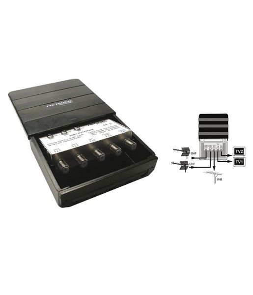 Amplificateur TV Audio avec Filtre LTE - 3 entrées UHF/UHF/VHF , 2 sorties TV