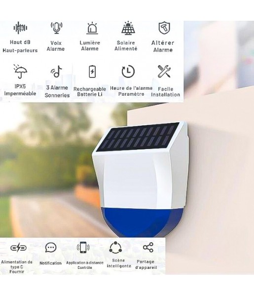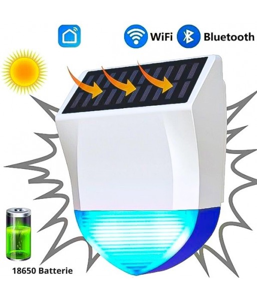 Sirène Wi-Fi, alarme extérieure 95dB étanche avec USB, télécommande