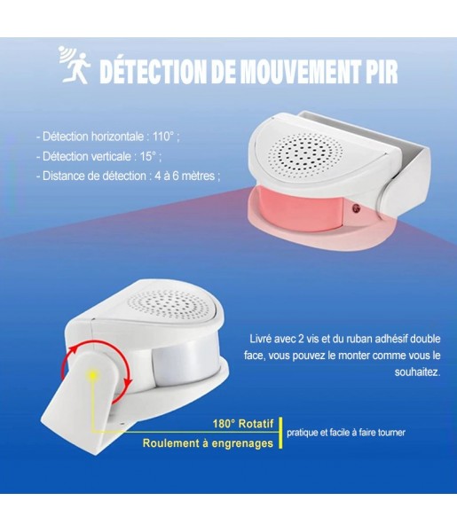 Que ce soit pour accueillir vos clients avec une musique de bienvenue, prévenir une intrusion ou simplement être alerté lorsqu’un visiteur franchit votre seuil, ce dispositif vous permet de contrôler efficacement les entrées, sans installation complexe. Sa technologie sans fil et son alimentation polyvalente (piles ou secteur) en font une solution souple, adaptée à tous les besoins.