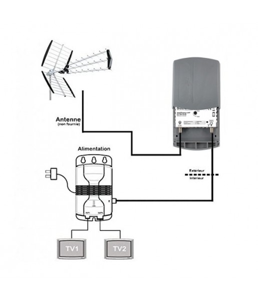 Kit Amplificateur 35 dB + Alimentation 12 Volts 2 sorties Canaux 21-48 SEDEA