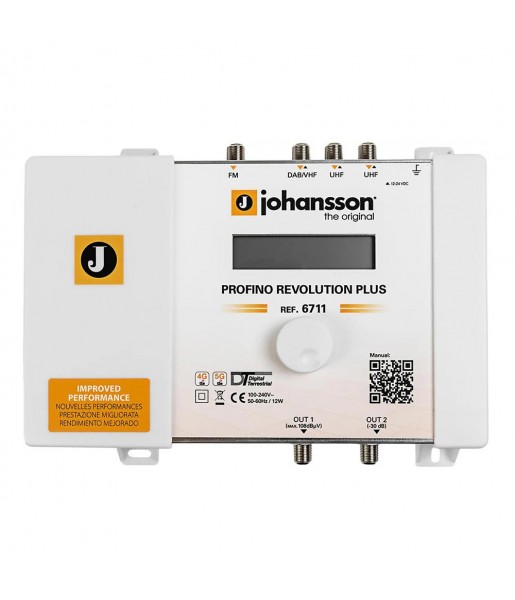 Installation très simple et rapide avec une excellente qualité du signal de sortie. La centrale 6711 est parfaite pour les installations fibres. La tête de lit programmable Profino Révolution Plus dispose de filtres extrêmement sélectifs pour éviter l'apparition de bruit dans le signal TNT. Avec ce matériel, il n'est pas nécessaire d'utiliser des compteurs de champ, car il intègre la lecture de l'intensité du niveau d'entrée. Ce modèle de centrale programmable correspond à la version supérieure de la Profino Révolution (6710) de Johansson.