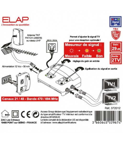 Alimentation amplifiée filtrée 220 / 12V ELAP 360016 - 50mA pour préamplificateur TV, 3 sorties TV + filtre 5G LTE 700 MHz + rég 39.81 €