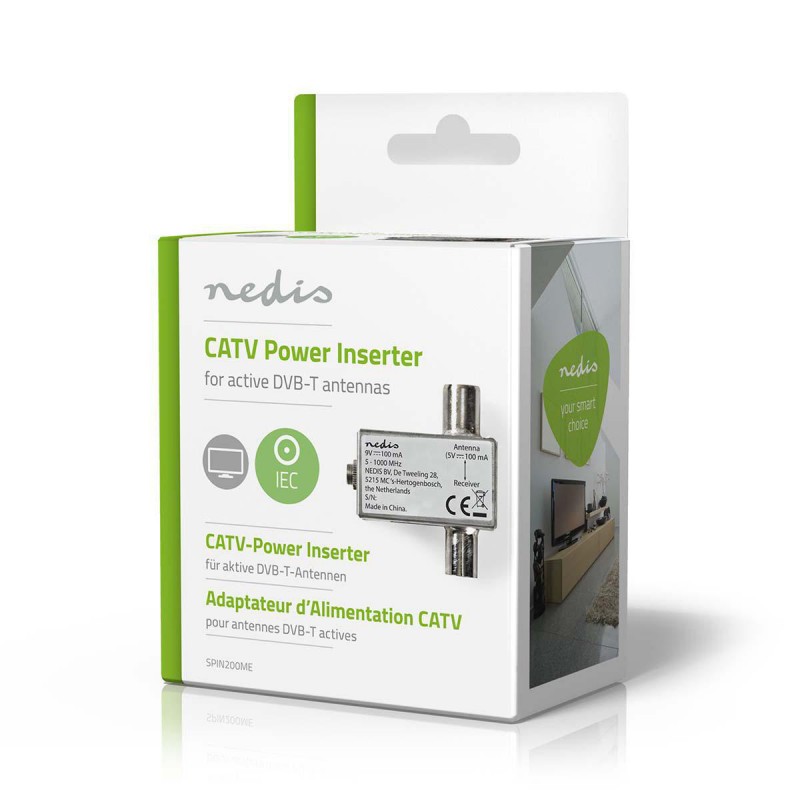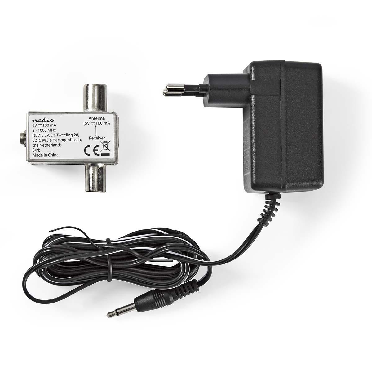 Amplificateur de signal 5-1000 MHz avec gain de 2 dB, faible consommation et connecteurs IEC, idéal pour améliorer la qualité de réception TV à domicile.