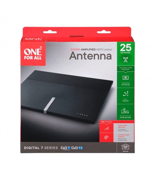 Antenne TV TNT Intérieure Amplifiée Ultra HD 4K DVB-T/T2 DAB+ ONE FOR ALL SV9495