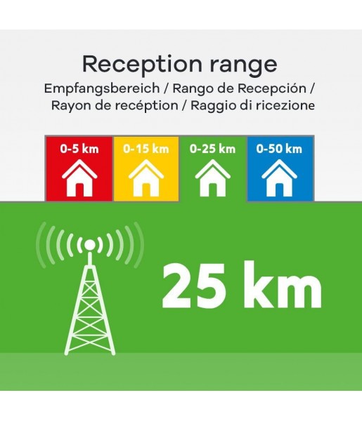- Zone de réception : 0 - 25 km ;