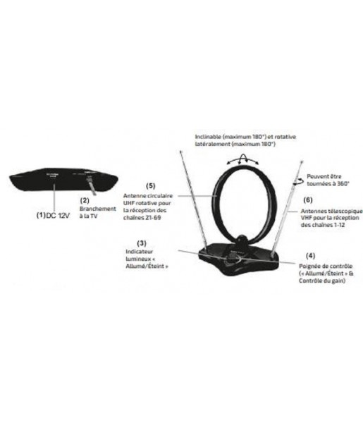 Antennes télescopiques réglables et circulaire rotative pour optimiser la réception selon votre positionnement.