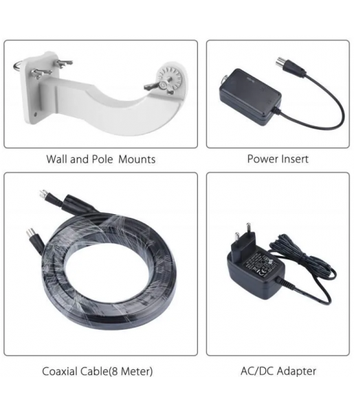 • Câble coaxial de 8 mètres : permet une installation flexible, idéale lorsque votre téléviseur n’est pas proche d’une fenêtre.