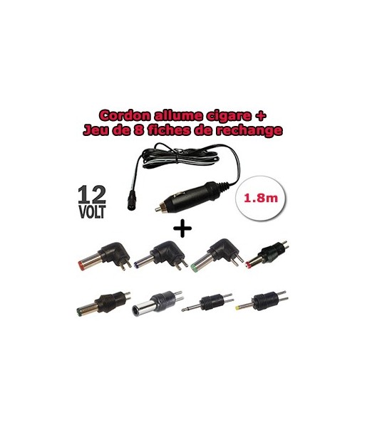 Cordon allume cigare 1.8 m mâle pour camping car + Jeu de 8 fiches de rechange