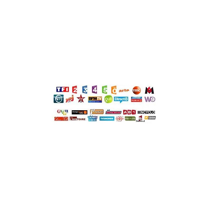 - Les grands chaînes généralistes : TF1 HD, France 2 HD, M6 HD, France 3, W9, RTL9, NT1, TMC, Téva, Canal+ (en clair, hors HotBird)