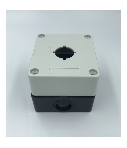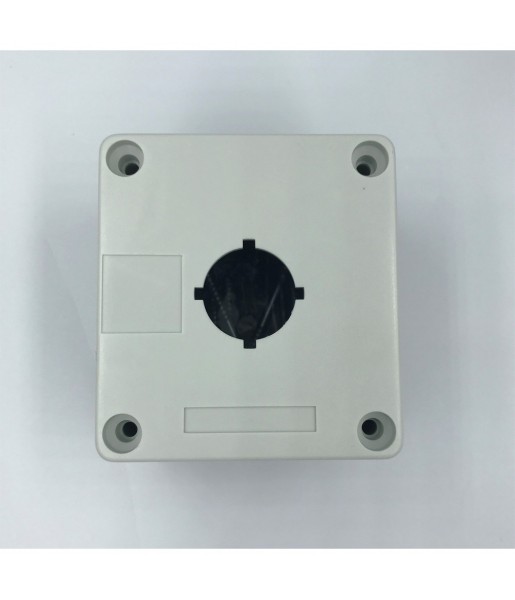 Boîtier 1 trou 22mm de diamètre pour bouton contact voyant BOX122 Ce boîtier saillie de protection est prédisposé pour fonctionner entres autres avec les boutons coup de poing. Caractéristiques techniques : - Dimensions : 78x70x63mm ; - Poids : 0.1 Kg.