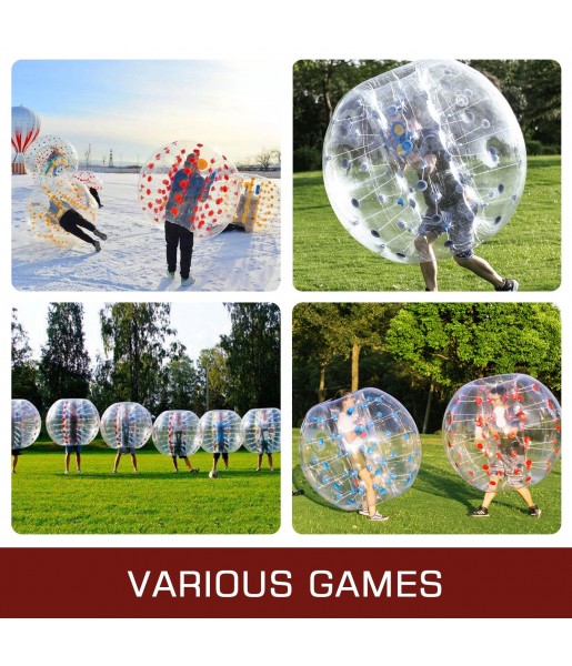 Largement utilisé dans la cour, le parc, la plage, le centre de jeux. Jouez à des jeux comme du bubble football, se heurter dans les balles et se tenir en debout. Les balles de 1,5 m de diamètre pour les adultes de plus de 1,6 m et les balles de 1,2 m de diamètre pour des enfants de 1 m à 1,5 m.