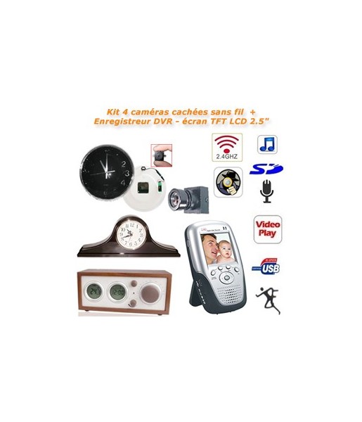 Kit 4 caméras cachées sans fil + Enregistreur DVR portable sans fil 2.4GHz - écran TFT LCD 2.5" - 4 canaux