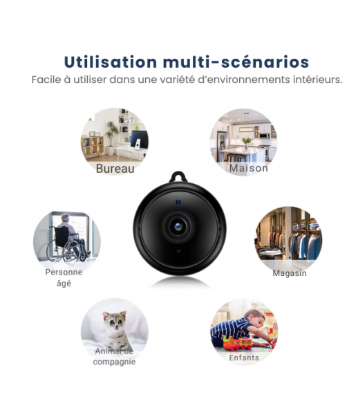 Cette mini caméra de surveillance intérieure sans fil se distingue par ses fonctionnalités complètes et sa facilité d’usage :