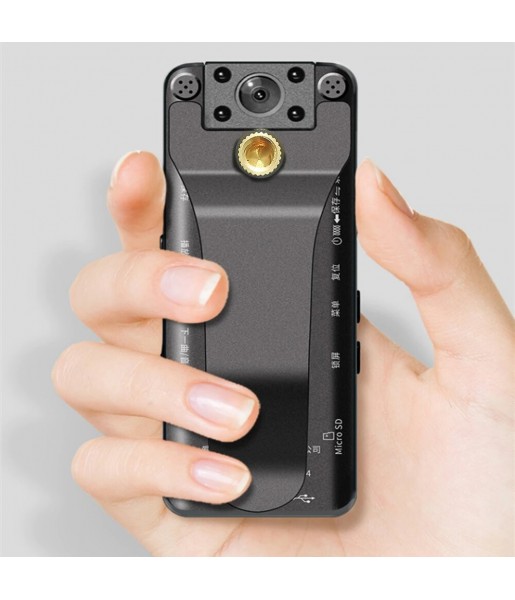 Mini caméra de surveillance corporelle 1080P HD avec vision nocturne, détection de mouvement, tête rotative à 180° et autonomie de 10h. Compacte, aimantée et livrée avec carte micro SD 128 Go, elle est idéale pour la sécurité personnelle et professionnelle en déplacement.