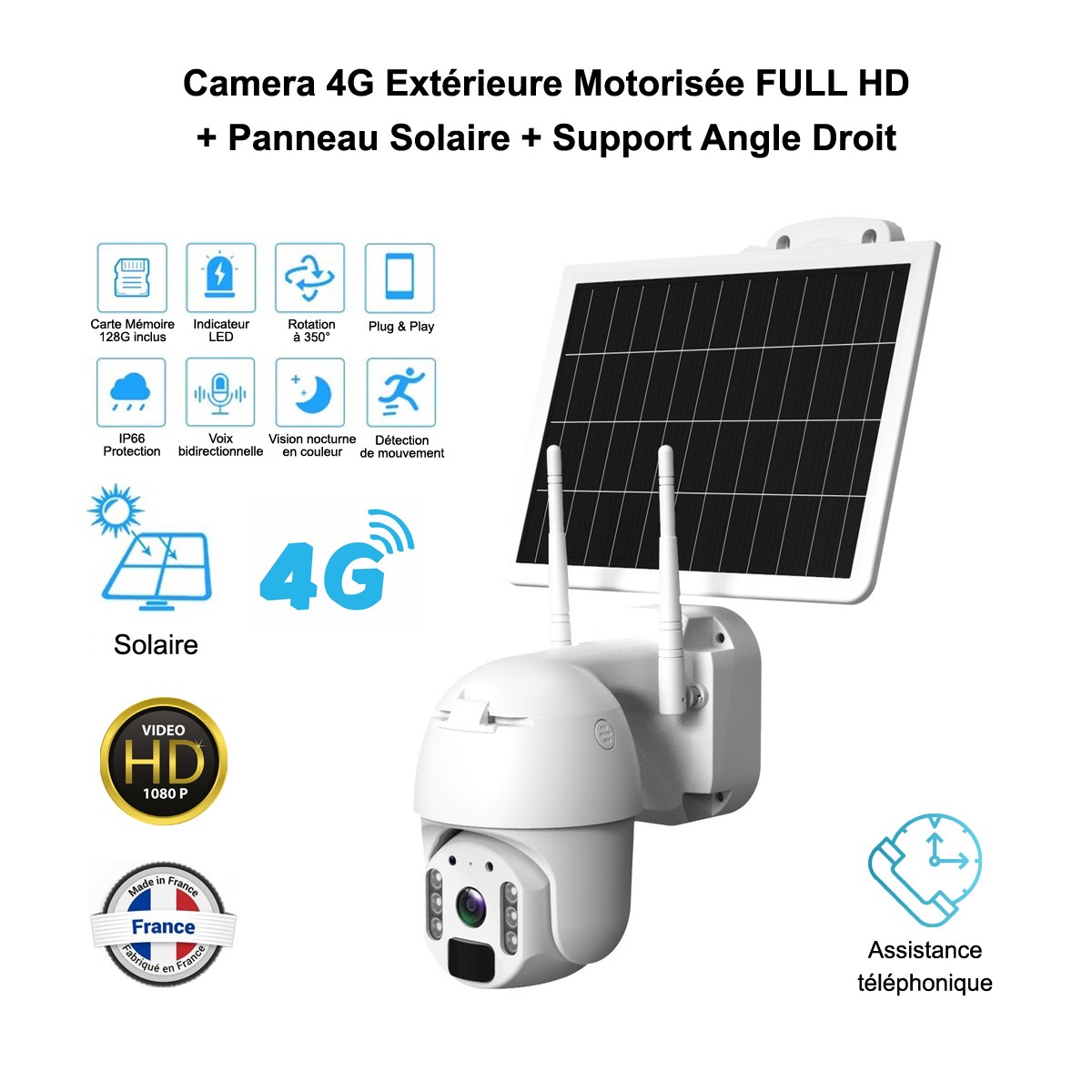 Camera 4G extérieur motorisée FULL HD Solaire Vision 92° IR Contrôlable à distance nano SIM 300Mo offert Micro et Haut Parleur