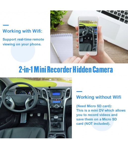 Cette caméra intelligente HD 1080P ultra discrète sans fil est une des meilleures solutions en terme de surveillance de votre maison ou lorsque vous utilisez votre voiture.