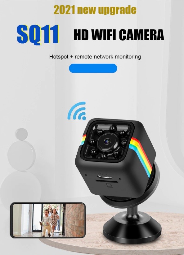 Mini caméra de Sport SQ11 ultra-compacte avec enregistrement Full HD 1080P, vision nocturne, détection de mouvement et grand angle 140°. Idéale pour le sport, la surveillance ou les déplacements. Facile à utiliser, légère (15g) et compatible iOS/Android.
