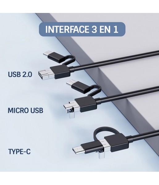 Compatibilité 3-en-1 : fonctionne avec Micro USB, Type-C et PC, pour une flexibilité maximale.