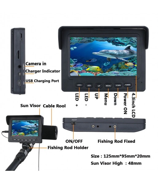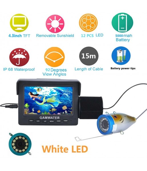 Kit Détecteur de poisson Caméra Vidéo Pêche Sous-marine 4.3" GAMWATER - 15M 1000tvl, 12 PCS IR LED, Matériel de Pêche, Natation
