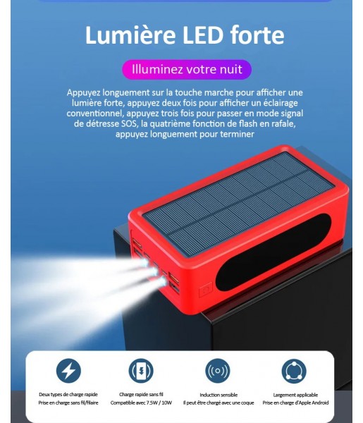 - Type : charge rapide, haute capacité, chargeur sans fil, PORTABLE, Station d’Alimentation, chargeur rapide 2 en 1, pour l'extérieur ;