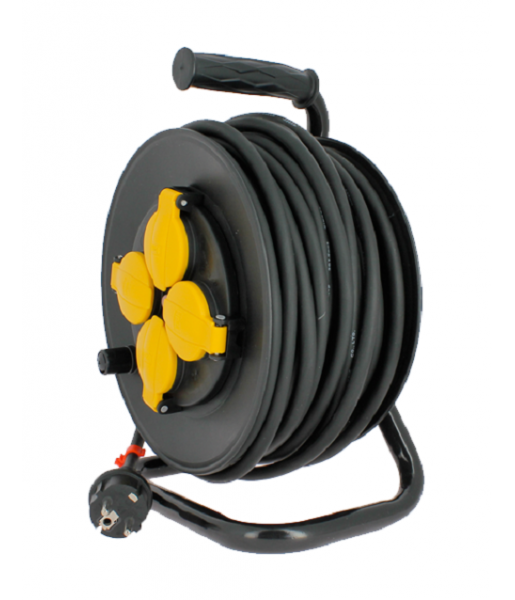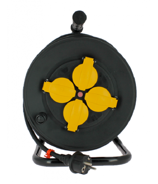 Cet enrouleur électrique « spécial chantier » est équipé d’un câble 3G1,5mm2 en élastomère renforcé et de 4 prises électriques (16A/230 VAC – NF) étanches permettant une utilisation intérieure comme extérieure. L’enrouleur est composé d’un pied en acier trempé pour une solidité optimale. Les couvercles protègent les prises de la poussière. Ce produit est également équipé d’un disjoncteur thermique évitant toute surchauffe. Ce câble flexible et résistant aux éclaboussures est idéal pour une utilisation en extérieur (exemple : entretien de la pelouse ou autres travaux de jardinage…). 4 prises électriques 16A/230VAC avec terre Câble 3G1,5 de 25 mètres en élastomère renforcé Etanchéité IP44 (protection contre les éclaboussures) Poignée pour faciliter son transport et son utilisation Cordon enroulé dans un boîtier pour limiter l’encombrement Disjoncteur thermique intégré pour éviter toute surchauffe Caractéristiques techniques : 4 prises 16A – 230 VAC Câble 3×1,5mm² en Élastomère Puissance maximale : 3200W Protection contre la surchauffe : 56±5℃ Longueur : 25 mètres Coloris : noir & jaune Protection enfants Norme NF Pied en acier trempé Qualité professionnelle