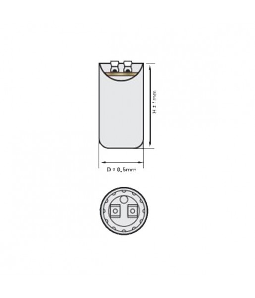 Condensateur de démarrage pour moteurs électriques monophasés, de type électrolytique non polarisé, avec gaine en PVC et connexion par bornes. L'application de ce type de condensateurs est le démarrage de moteurs électriques monophasés, fournissant le couple nécessaire au moteur monophasé pour son démarrage. Ce sont des condensateurs électrolytiques en aluminium non polarisés pour un fonctionnement intermittent dans les circuits de démarrage de moteurs électriques monophasés, ils ne doivent pas être utilisés pour une autre application, ni être utilisés dans un régime permanent comme condensateurs de fonctionnement.
