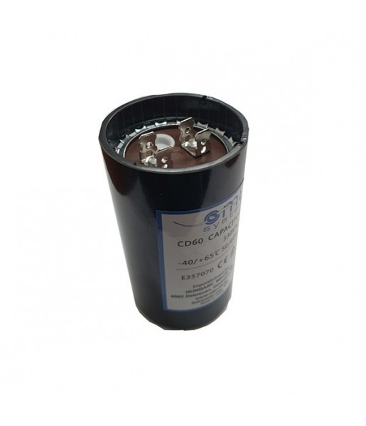 Condensateur de démarrage 160-200μF/330Vac type CD60 , pour moteurs électriques monophasés, avec gaine PVC et raccordement par bornes. Ce type de condensateurs a été exclusivement conçu pour être utilisé comme condensateurs de démarrage dans les moteurs électriques monophasés. Référence : CDI 160-200 μF/330Vac