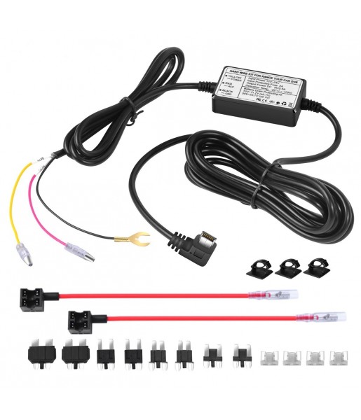 Range Tour Drive Recorder Câble d'alimentation de surveillance du stationnement 24 heures sur 24, tension convertie de 12V-24V à 5V pour les voitures. 3 noyaux, 4 types / 8 adaptateurs et 4 fusibles, cordon d'alimentation à connexion directe mini USB.