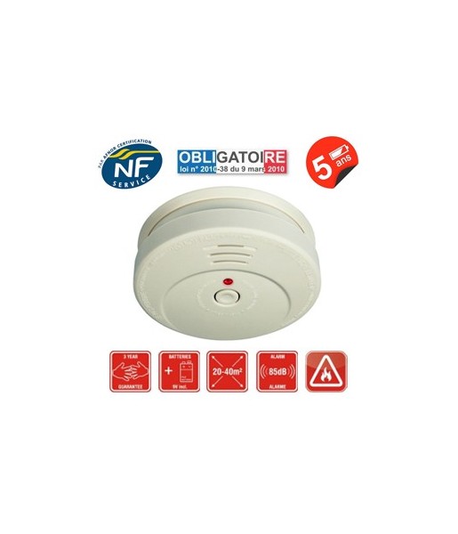 Détecteur de fumée Certifie CE ET NF autonomie - Sirène intégrée 90 dB - 40 m²