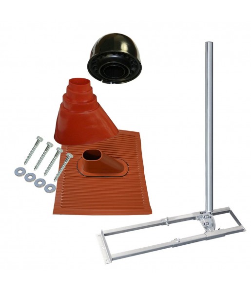 Support de chevrons toit fixation antenne SAT + Manchon Pour Mât Rouge + Tuile plastique / alu Rouge + Capuchon de Mât + Jeu de