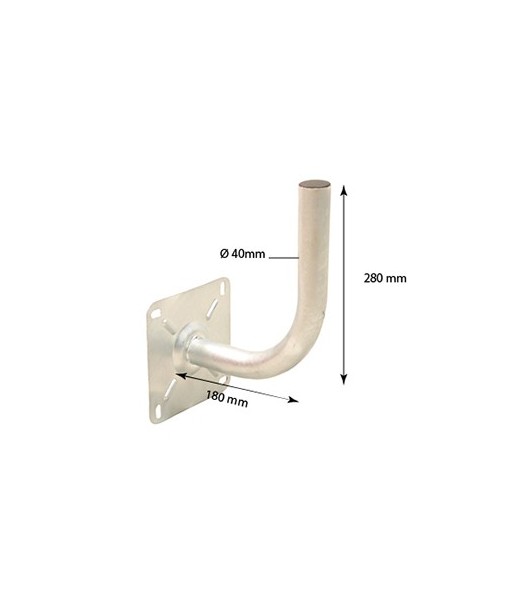 Bras coudé galvanisé à chaud pour une meilleure tenue dans le temps. Il permet la fixation d'une antenne terrestre ou d'une parabole. Ce support permet de réaliser un montage mural avec 4 vis de fixations (non fournies).
