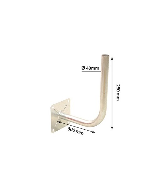 Bras coudé galvanisé à chaud pour une meilleure tenue dans le temps. Il permet la fixation d'une antenne terrestre ou d'une parabole. Ce support permet de réaliser un montage mural avec 4 vis de fixations (non fournies).