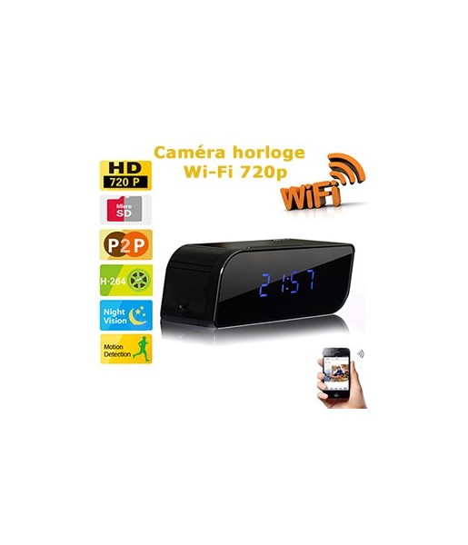 Réveil avec caméra cachée couleur - WiFi - DVR - HD 720p - détecteur de mouvement - vision nocturne - accès à distance - MicroSD jusquà 32Go