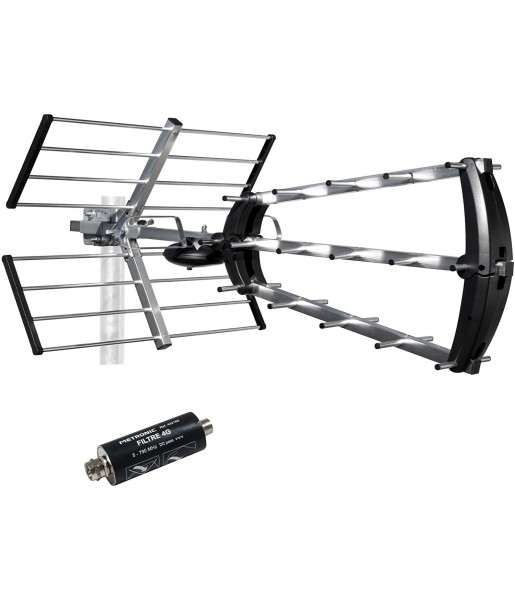 Kit Antenne d'Extérieure Trinappe 26dB UHF Metronic Kit Antenne d'Extérieure Trinappe 26dB UHF Metronic Préamplificateur 4/1 TV Amplificateur + Alimentation 4 Sorties TV Préamplificateur 4/1 TV Amplificateur + Alimentation 4 Sorties TV Filtre 4G intégré