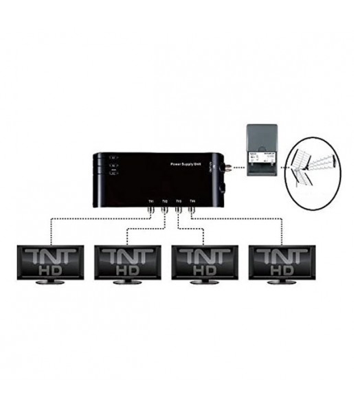 • Alimentation : Bloc d’alimentation avec 4 sorties TV