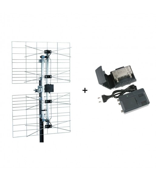 Kit Antenne Panneau UHF Extérieure TNT HD + Préampli Etanche UHF Réglable 1 entrée 1 sortie + Alimentation 220V - Gain 15dB+38dB