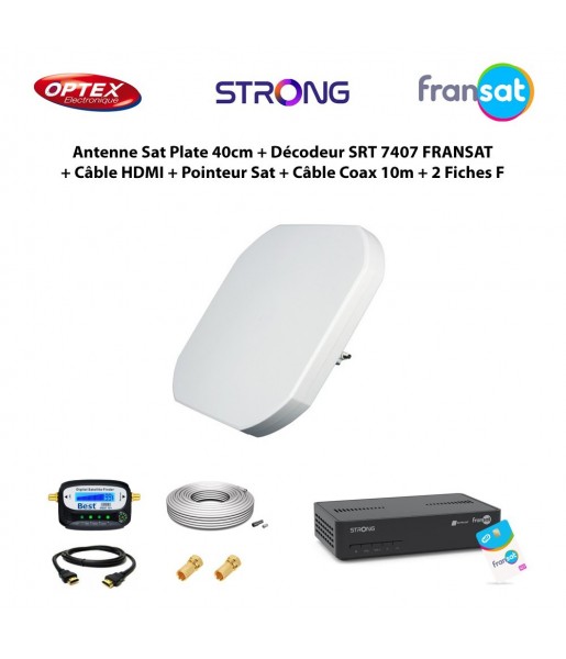 Kit Antenne Satellite Plate 40cm + Décodeur SRT 7407 HD FRANSAT + Câble HDMI + Pointeur Satellite + Câble Coaxial 10m + 2 Fiches